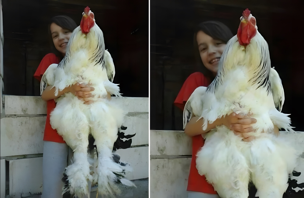 This unnerving picture of a kid holding a giant chicken is not photoshopped, and neither is the kid abnormally small! This chicken belongs to the Brahma Chicken breed, which is just too large for its own good. You can either think it cute or weird; that is up to you.