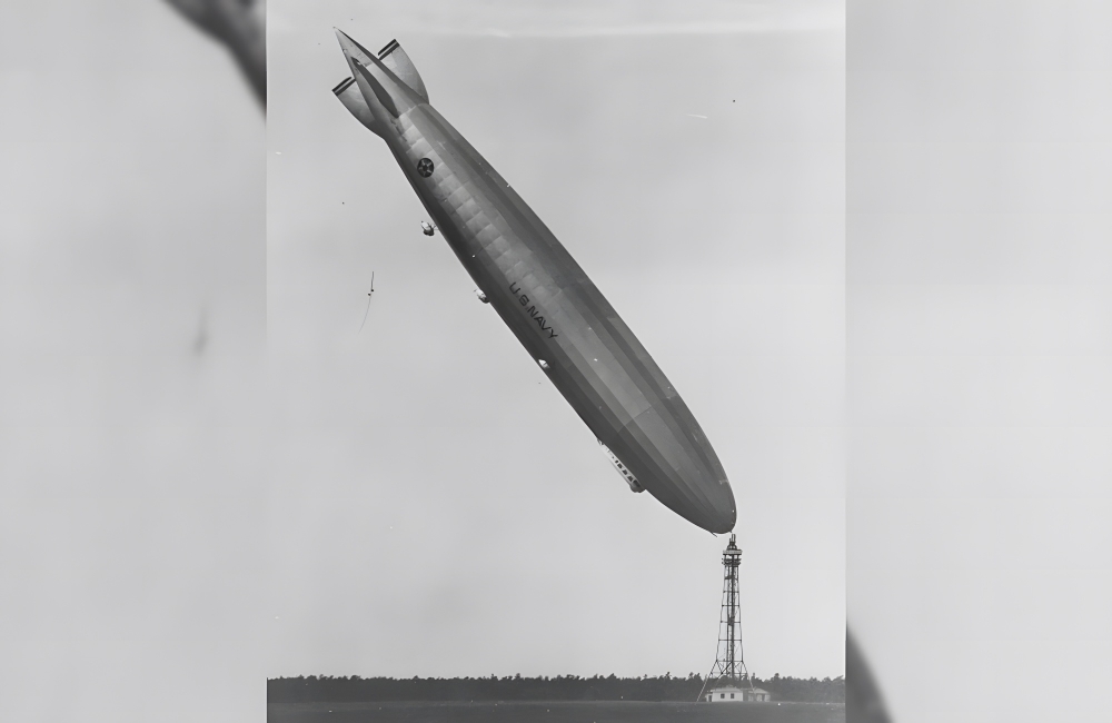 This jarring sight was a sharp reminder of just how big the airship was, especially when compared to the puny-looking tower next to it. The airship was constructed in the 1940s, launching a year before the end of World War II.