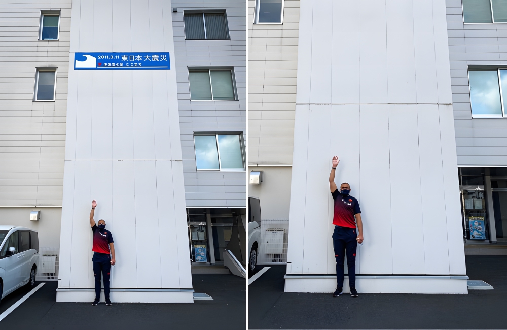 This blue plaque marks the spot where flood waters reached during the 2011 tsunami that devastated the region. This means that the water reached up to two consecutive floors of the side of the building, drowning everything in sight. Yikes.