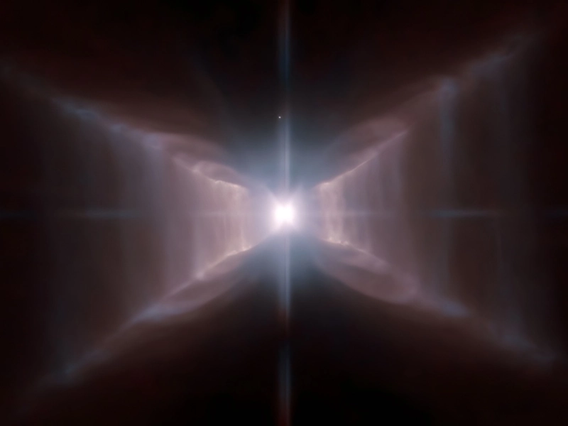 Nearly as much remains unknown about the Red Rectangle Nebula’s distinctive “extended red emission” as it did upon its discovery in 1973. The unique geometric shape of the nebula may have been caused by two stars at its centre reflecting twin cones of light through space dust. Of then, it might just be extraterrestrial art.