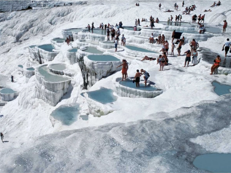 A wounded legion of troops came upon the thermal springs while withdrawing from combat, during the height of the Roman Empire.Many of the soldiers had suffered significant injuries, and they found that swimming in the waters high in calcium sped up their recovery dramatically.As word of this miracle grew throughout the empire, the old city of Hierapolis became a healing center.Rich Romans, thought to be blessed by Apollo personally, would travel thousands of miles to seek treatment in these seas, according historical accounts.Archaeological data confirms this myth; several of the unearthed objects reveal deditions to the god of healing and several medical tools applied in ancient spa treatments.Roman bath and treatment room remnants still exist today, evidence of the ongoing conviction in the therapeutic powers of the springs.