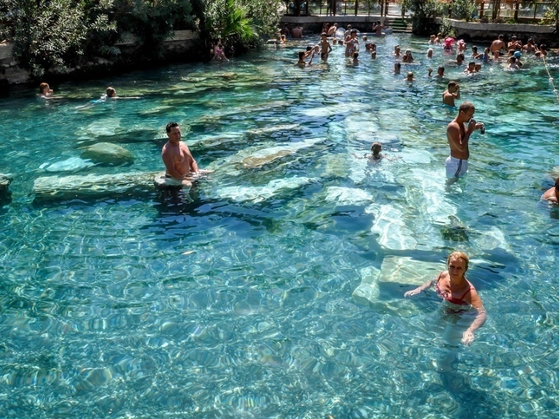 Within the center of old Hierapolis sits the Plutonium, a mystery cave thought to be the portal to the underworld.According to the myth, twelve guardian spirits—each taking the shape of whirling mists above separate pools—emerged from the thermal springs to defend this entrance.Those with pure hearts were supposed to be able to safely approach these holy waters; those with bad intents would be overpowered by unknown powers.Believing they could interact with the spirits of the underworld through the bubbling waters, priests of the temple would carry complex rites close to particular springs.Modern scientific research has shown that the cave does in fact exude harmful gases, so supporting the ancient ideas of its lethal nature.The particular configuration of the thermal springs around this place generates strange acoustic effects that occasionally produce sounds like whispers and chants, hence augmenting its enigmatic environment.