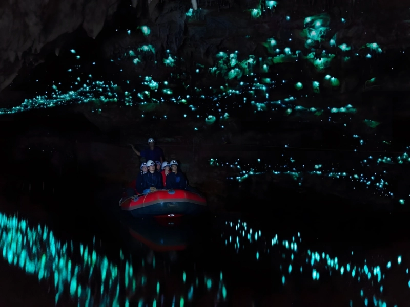 The Waitomo Glowworm Caves in New Zealand provide an enthralling underground show. The caves are renowned for their unusual inhabitants and feature thousands of bioluminescent glowworms that cast a captivating, celestial-like light show. Guests take boat rides that meander through the shadowy caverns, displaying the glowing light that these microscopic organisms emit.
