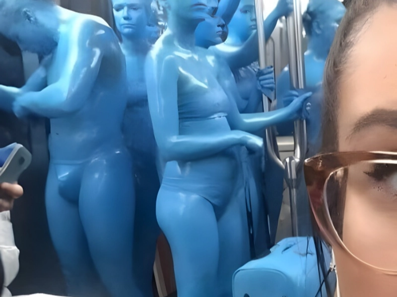 This picture shows a group of people totally painted in blue, complete with matching blue luggage, in a scene that aptly captures the special character of the subway system of New York City. The typical subway scene accentuates the surreal character of the picture by sharping the contrast between the blue-painted commuters’ amazing looks and the daily commuting surroundings. The competitors show amazing dedication to the aesthetic; they keep whole attention to their blue motif down to their personal items. Whether it’s connected to a performance art work, film production, or advertising event, the reason behind this odd exhibition is still unknown. Still, it highlights the kind of unplanned meetings that make the subway system notorious for unique sightings. The picture catches the core of urban life in which the remarkable and everyday often mix.