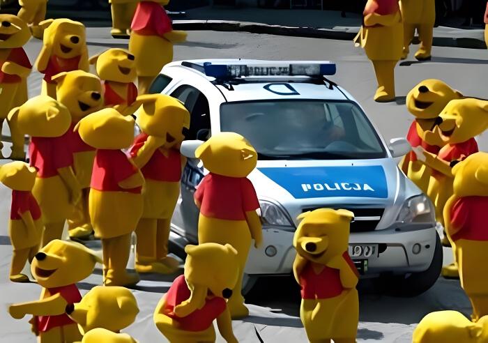 Either way, it would be pretty crazy to see in person, especially if everyone in the photo really was protesting by dressing up as the honey-loving bear, Winnie the Pooh.