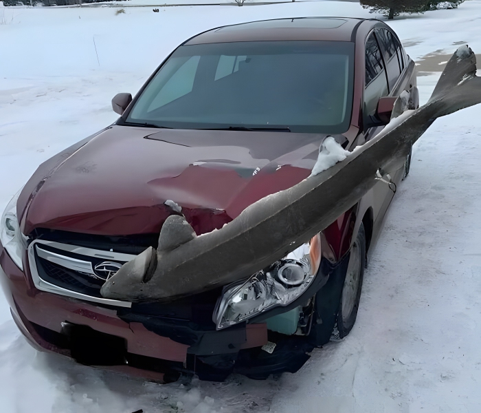 We’ve never seen a photo quite like this one, but then again, that’s true for a lot of the photos on this list. It looks like someone was driving down the road when they somehow slammed into some kind of sturgeon. Not only that, but it appears as though it’s so cold outside that the sturgeon simply froze onto their front bumper. However, there is one clue as to what happened in this photo.