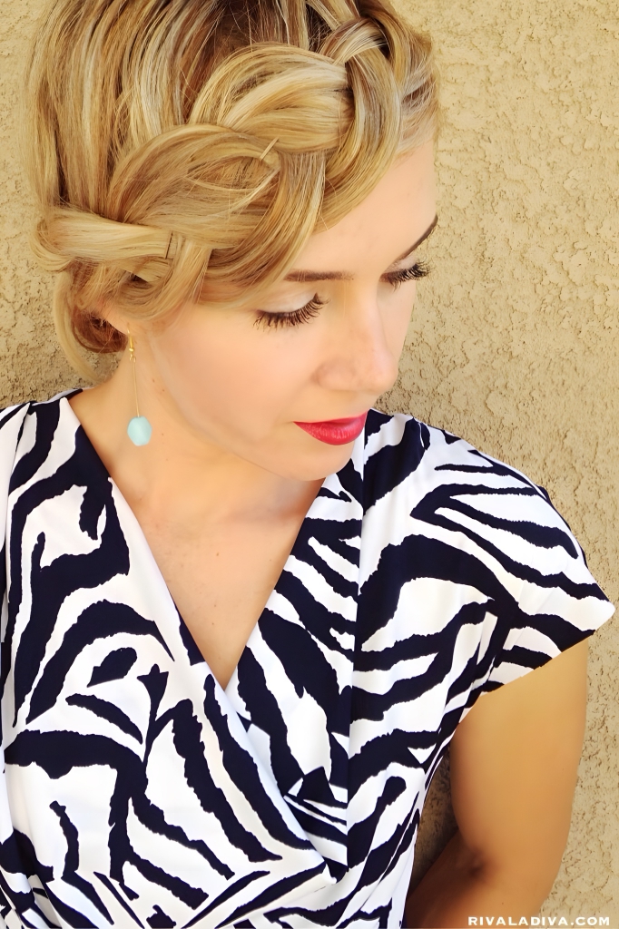This unique style would be perfect wear to a wedding, and the guests are sure to be wowed by theunique look. It is achieved by creating a large, loose braid around your forehead. Check out the full tutorial for this style over at Riva La Diva.