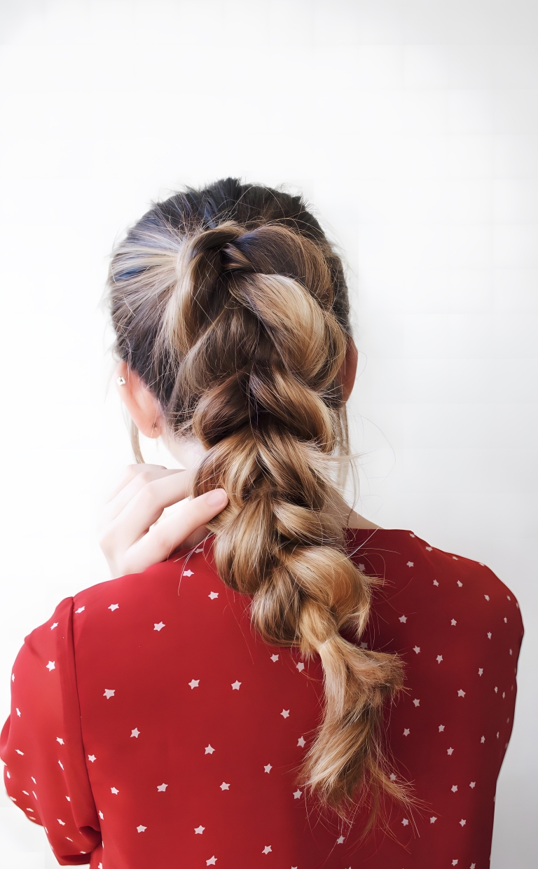 This pretty ponytail style looks a bit like a traditional braid, but it is actually a series of loops that are pulled through each other, and then loosened a bit. Make your way over to the Breakfast At Vogue blog to find out how to do this on your own hair.