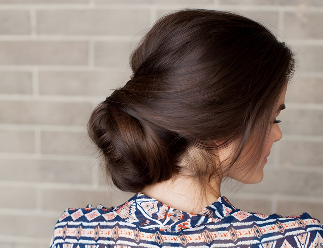 Here’s another great alternative to a plain old ponytail, and it’s really quite simple to do. You’ll literally double knot your hair, and then insert special pins to secure the hair. Make your way over to Gina Michele’s blog to check out the video tutorial.