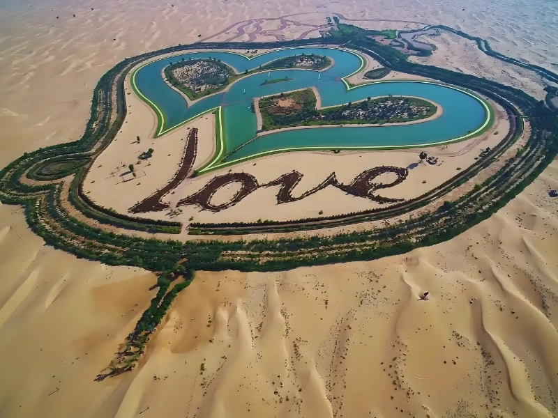 Dubai, a city that never ceases to amaze, has another wonder up its sleeve for lovers of romance. Imagine this: After a picturesque trip from Dubai, you’ll arrive at Love Lake, a love-themed spectacle nestled in the Al Qudra desert. Designed to capture hearts in a physical and figurative sense, this attraction is not your typical pond. Imagine two massive, space-worthy masses of water formed like two connected hearts! Heart-shaped seats and gates are also present, making them ideal for those Instagram-worthy shots.