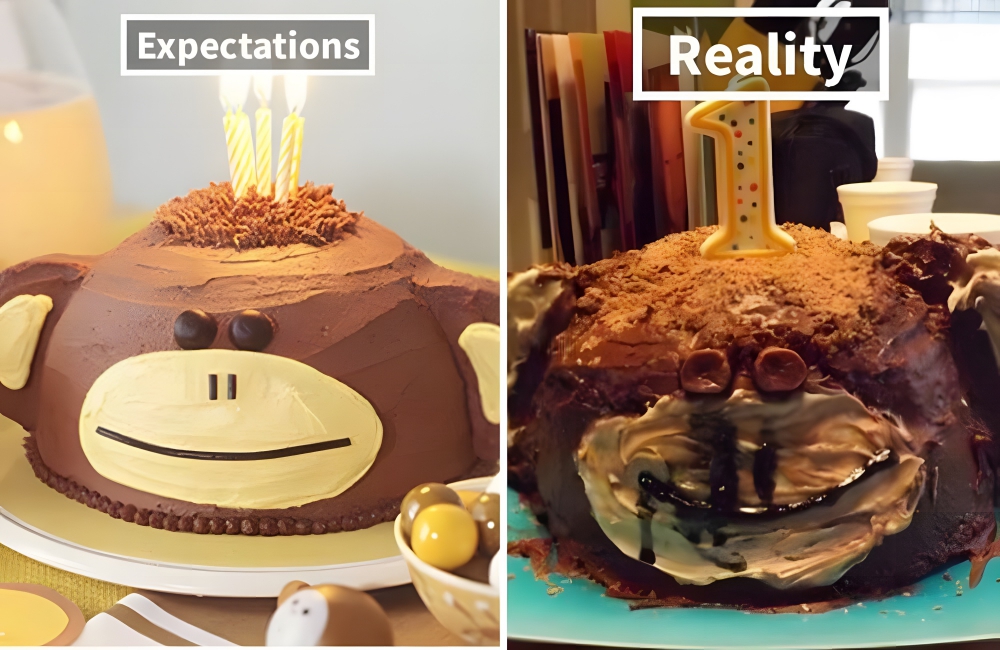 Once again, we have an Instagram/Pinterest idea gone wrong. This adorable monkey cake would be perfect for a little kid’s birthday party, but perhaps it’s best to let professional bakers execute the concept.
