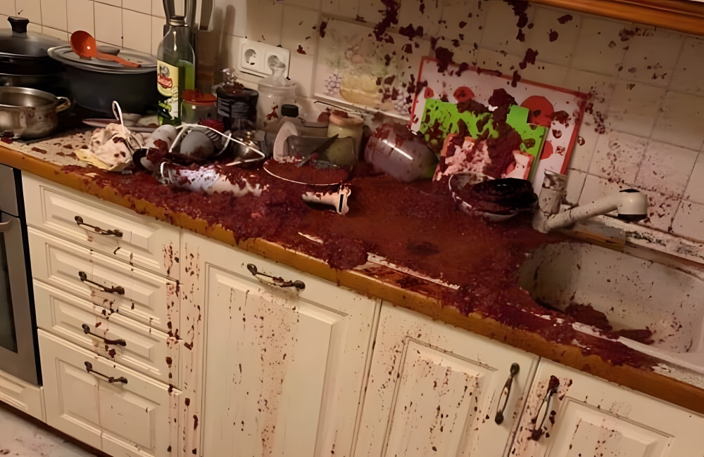 This person’s dad tried to make wine, resulting in this insane, explosive event. It’s not clear how this happened, but what is clear is that next time, dad should just go to the store and pick up a bottle, instead. Wine stains all on the white cabinets—yikes!