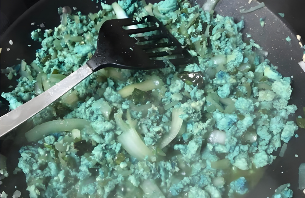 She turned her back for one second, and he snuck in with the blue food dye, ruining any Instagram photo she was planning to take. Though a weird blue hue, this food is still fine to eat. Ah, brothers—what would we do without them?
