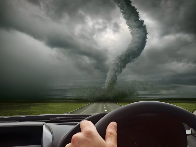 Actually, trying to flee a tornado in a car is quite risky and advised against by professionals for various reasons.