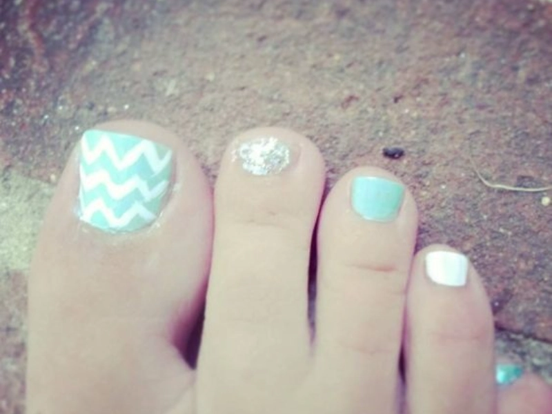 There are countless ways to apply the chevron design and hence many opportunities for personalising. For a more subtle look, you might decide to accentuate one or two of your toes using the pattern or cover all of your toes in line. To give your toes height and depth, consider designing using opposing colours, metallic tones, or even a mix of matte and glossy finishes. Including glitter or tiny rhinestones into the chevron design will provide individuals who are more brave an additional layer of dazzle and elegance.