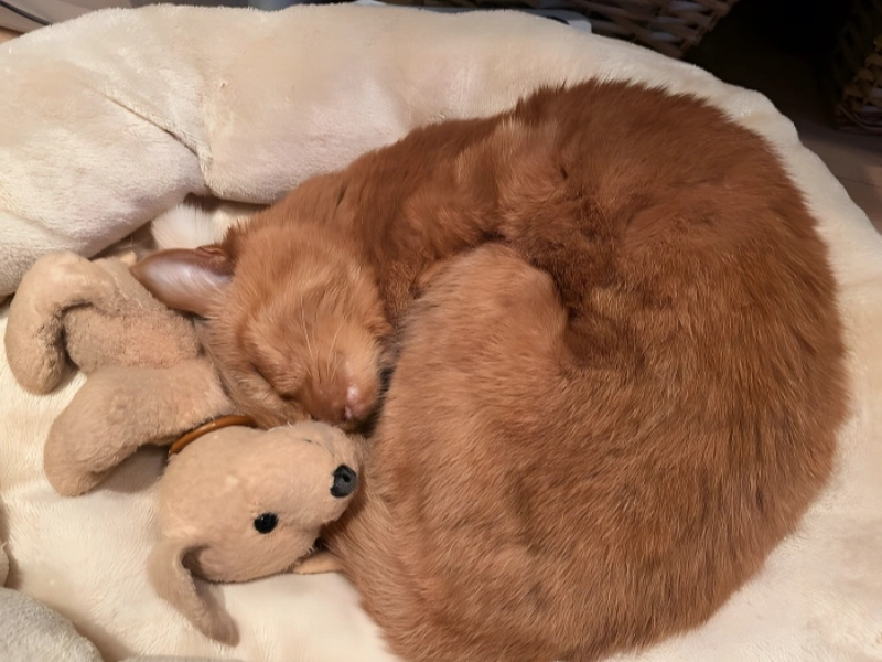 Many people worldwide battle to sleep without their childhood blanket or toy close by, and it seems as though the same idea holds true in the wild. Since it was a kitten, this 19-year-old cat has slept with its childhood toy; today it cannot sleep without cuddling up to it and snuggling all night long. How lovely is that? Its look is clear that this cat enjoys its toy. The fact that the beloved toy is actually a dog plush breaks the preconception of the usual cat-dog hostility, which makes this situation even more amazing. Dogs and cats are supposedly not very compatible, hence this dog toy has to be really unique for this cat. Particularly in its later, more mature years. Though faded after years of loving, the toy is still the most valuable object owned by this old cat. This touching scenario reminds us that comfort items are not only for humans and that our animal friends can create equally powerful lifetime emotional relationships. The fact that this cat has stayed close for almost two decades tells volumes about the range of animal emotions and their ability for long-term commitment.