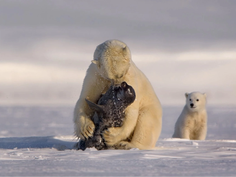Polar bears use great sensory awareness combined with patience to hunt seals successfully. Since these are ideal sites for seals to surface for air, they often search regions where the ice is weak or fractured. Polar bears can find seals from great distances using their remarkable sense of smell; occasionally even under several feet of snow and ice. Once they find a possible hunting habitat, they can lie in wait for a seal to surface for hours or perhaps days. Known as “still-hunting,” this kind of hunting calls for tremendous endurance and will. But the success rate of these hunts is shockingly poor; the WWF reports that less than two percent of its hunting attempts yield a successful catch. This low success rate emphasises the difficulties polar bears have finding food, hence their dependence on seals is all the more important.