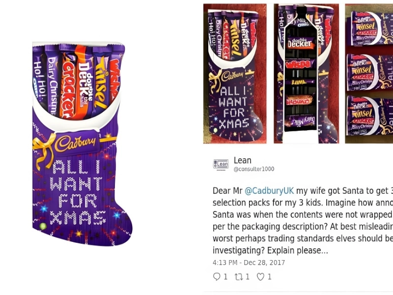 A Twitter user named @consulter1000 revealed information on Cadbury UK, a candy firm. His wife properly assumed, based on the packaging, that the sweets inside would be a variety of Oreo, Double Decker, Wispa, Dairy Milk, and more when she gave their kids three Cadbury selection packs for Christmas.