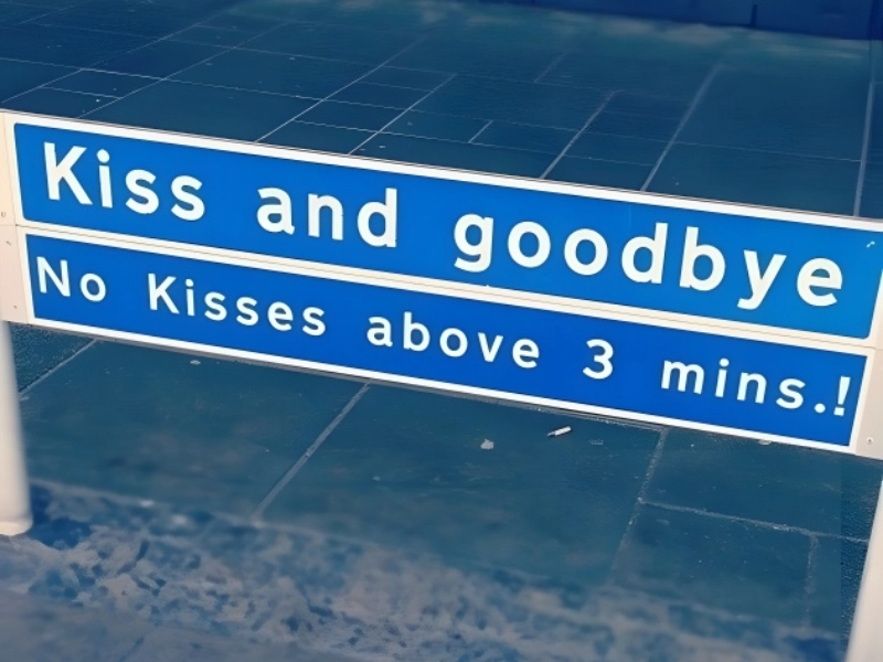 This sign is located at the airport in the Danish city of Aalborg. When people park their cars in the roadside check-in queue and bid their loved ones farewell, airport officials can be rather confrontational. To get around this, Denmark created a “Kiss and Goodbye” area where you can treasure your final minutes with your loved one before they depart. They did, however, decide to end the kissing session after three minutes.