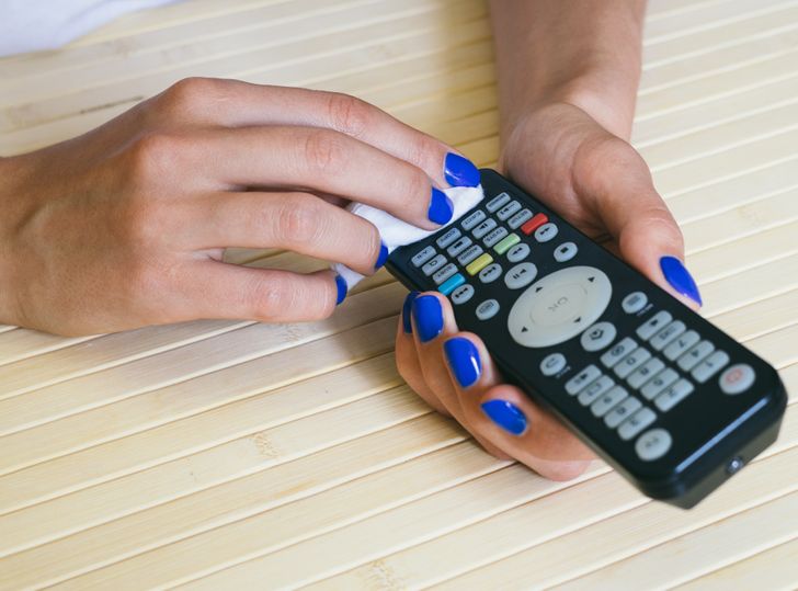 3. Use sanitizing wipes to clean up things that were most definitely touched a lot (like door knobs or the TV remote).