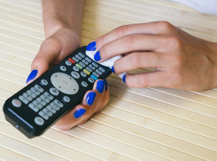 3. Use sanitizing wipes to clean up things that were most definitely touched a lot (like door knobs or the TV remote).