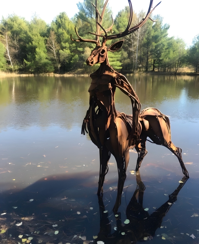 Is this aquatic deer with human arms pumping iron underwater to grow a bit of muscle? We can’t be sure. But don’t go for this one the next time you’re considering a lake ornament.
