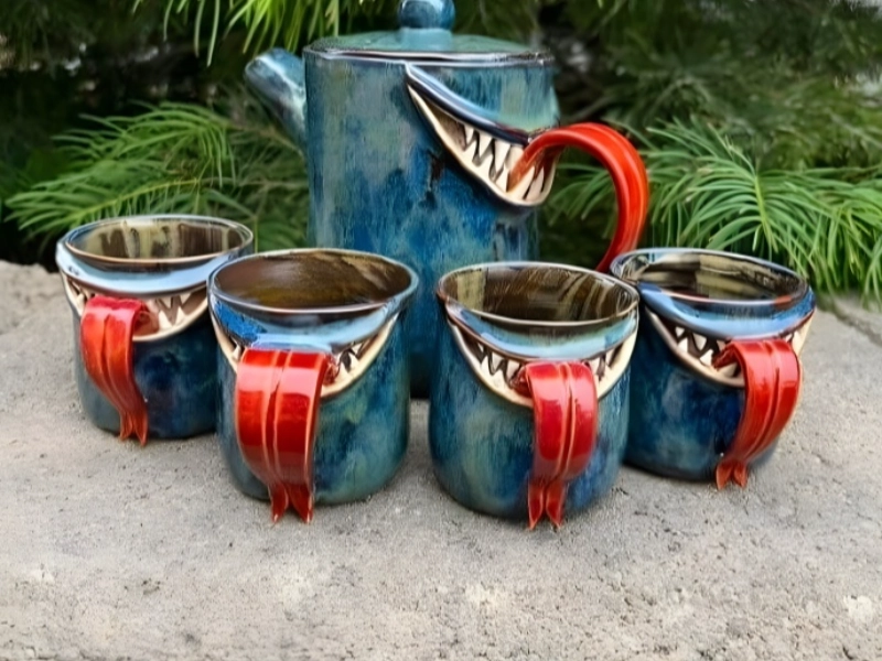 This really unusual tea set stretches ceramic design into pleasantly disruptive territory. From the shockingly lengthy tongues to the menacingly pointed teeth lining the sipping edges, every piece in the collection boasts painstakingly created hideous details. The creative execution is amazing; every grimace and snarl in baked clay is precisely caught. These works are not only frightening for shock’s sake; they also cleverly subvert conventional tea service expectations, turning a usually refined pastime into something somewhat more adventurous. These works especially distinctive and conversation-worthy because of their interesting paradox created by the juxtaposition between the polished activity of tea drinking and the horror-inspired design.
