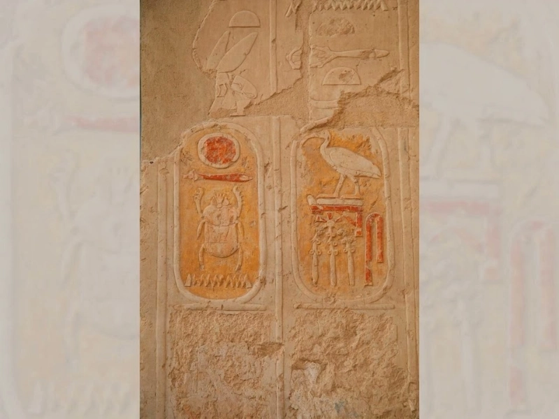 Young also found names for Ptolemy and Cleopatra in the hieroglyphic text. He guessed that the oval rings—now known as cartouches—contained royal names by contrasting the Greek language with the hieroglyphs. Since it offered some of the earliest clear ties between certain hieroglyphs and their meanings, this was a major advance.