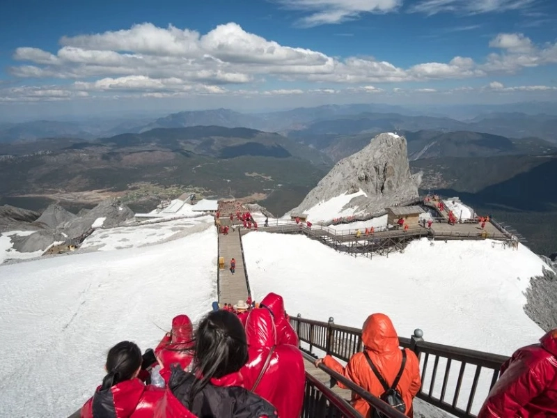 Excellent views of the nearby snow capped mountains framing Huanglong Valley are provided by the Snow Mountain Observation Point.With particular focus on winter views, this platform is set to catch the grandeur of the Alps in all seasons.The facility features heated indoor viewing sections with floor-to– ceiling windows, therefore enabling comfortable viewing even in demanding weather.Special photography areas on the platform are meant to record how light and shadow interact on the snow-covered mountains.Clear days make this a perfect place for landscape photography since tourists may view kilometers across the mountain range.