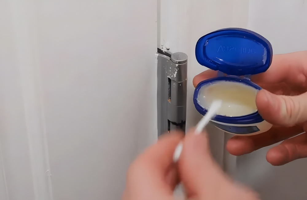 Wipe of the excess, and the hinge or lock should move more smoothly. Reapply every couple of months as needed. Vaseline can be a cheaper alternative to WD-40, but, if this hack doesn’t work, you may need to call in the big guns and buy something stronger.