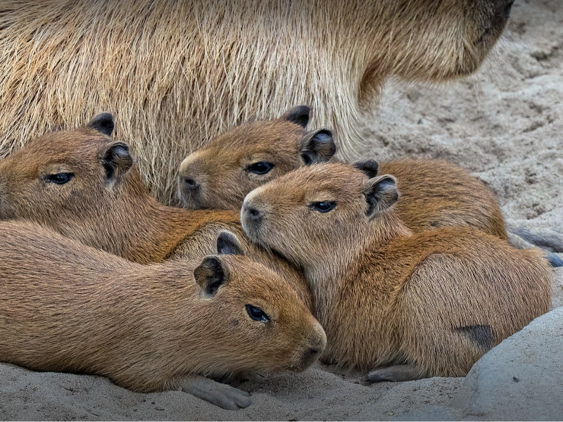 Capybaras’ natural snuggling behaviour is maybe the most heartbreaking quality of them. Often seen snuggling up to one another in gorgeous mounds, these loving animals have almost magnetic desire to physical proximity. This behaviour is basic for their social bonding, not only about keeping warm. From tiny pups snuggling with their moms to adults huddling together during rest periods, all age capybaras participate in cuddling. Beyond their own species, capybaras have been seen cuddling with a range of other creatures, including dogs and cats as well as birds and even reptiles. Their eagerness to participate in inter-species cuddles has made them internet sensations; many pictures and videos highlight their skilful hugging. Not only is this snuggling behaviour adorable; it also has physiological and social purposes. It strengthens group social ties, lowers body temperature, and helps control stress. It is rather lovely to see a capybara gently nuzzling against a friend or giving another animal a cosy, hairy hug. Capybaras are not only beautiful to look at but also rather soothing to be around because of their seductive snuggling tendency, which helps to explain their rising popularity as therapy animals in many different environments.