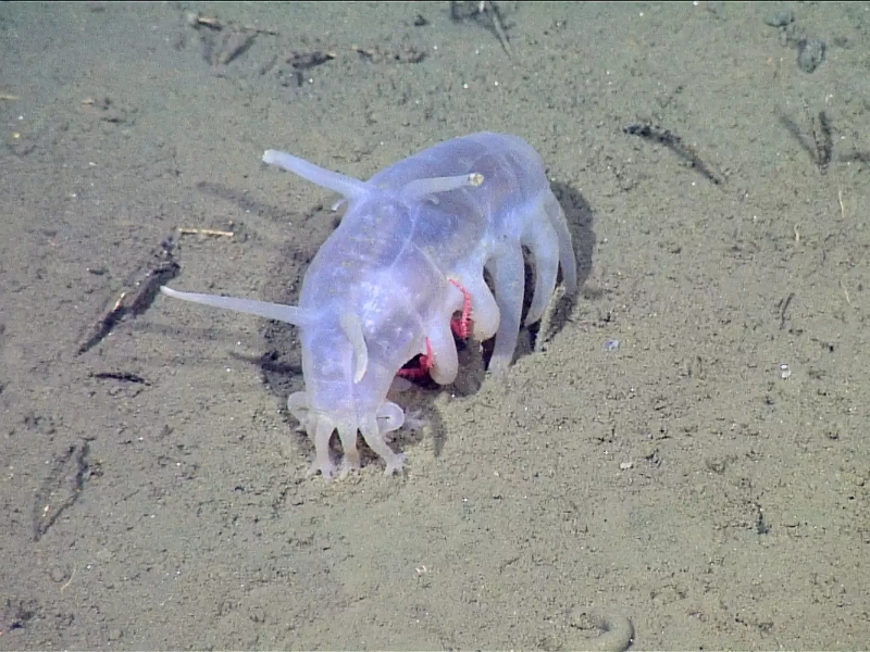 Sea pig anatomy is fascinating in part because of its many tube feet, which stretch from many areas of their body—including their skull. Mostly helping with mobility on the seafloor, these tube feet have several uses. Using these appendages to “walk,” or glide across the abyssal plains, the sea pig leaves distinct tracks seen in deep-sea images and movies. In an environment where nutrients are sometimes limited, sea pigs’ special form of mobility enables them to cover somewhat vast distances in search of food, a necessary adaptation.