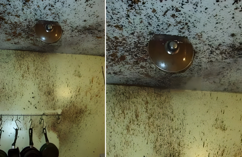 How…? How did this happen? That’s our question when looking at this kitchen “mishap” (the word doesn’t seem strong enough. This is going to take hours to clean, not to mention hundreds to fix the ceiling.
