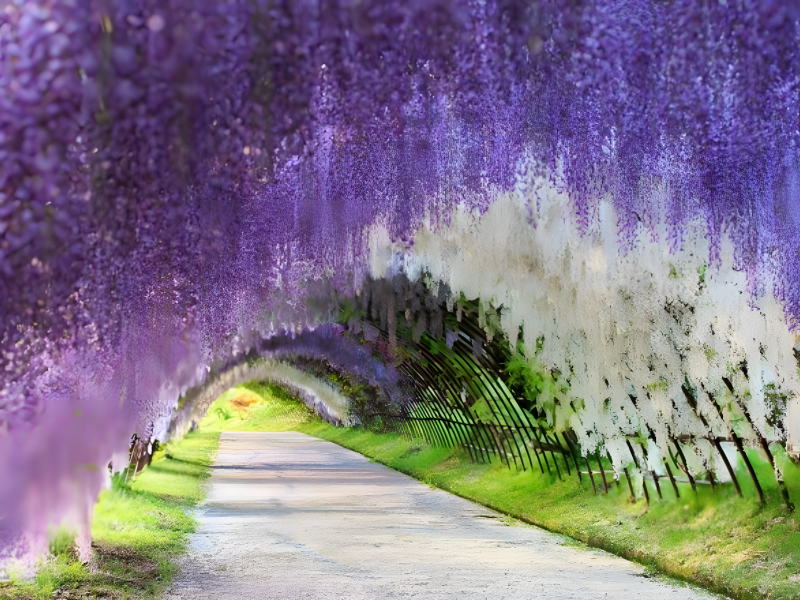 In the Japanese flower garden is the excessively lovely Wisteria Tunnel.