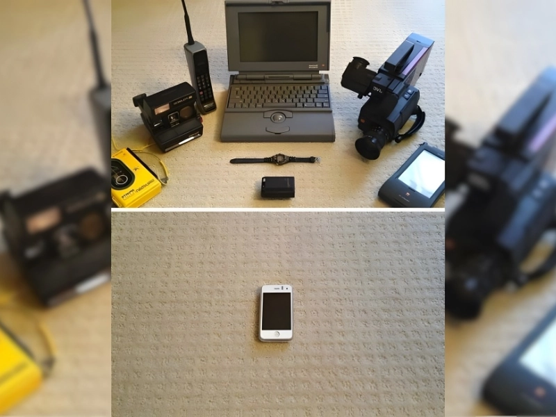 This image displays everything that the smartphone has replaced, making it an eye-opening comparison. Back then, each digital function required a different equipment. However, a smartphone integrates all of it into a single pocket.