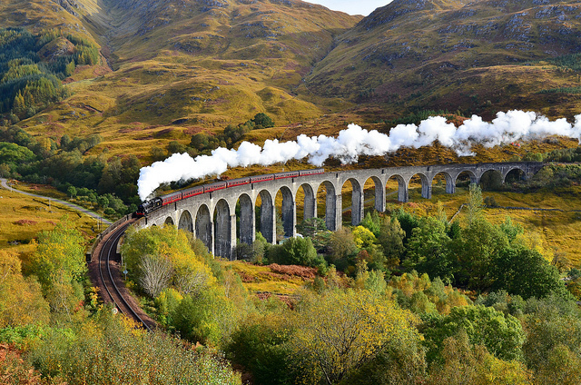 The Glenfinnan viaduct in Scotland is a concrete arched railway that has become the highlight of many films. But the most famous this viaduct became after films about Harry Potter, according to which the road to Hogwarts lies exactly through the Glenfinnan viaduct. Harry and his friends are driving on the Hogwarts Express on this bridge, following their school back and forth.