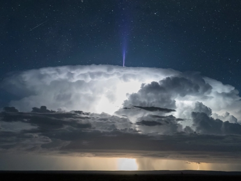 Another amazing and unusual kind of meteorological event, blue jets differ from other kinds of lightning in their upward direction. Blue jets, originating from the tops of thunderstorm clouds, soar into the stratosphere to reach heights of up to thirty miles. Their blue colour and narrow, cone-shaped beams define them; these are thought to be derived from nitrogen emissions in the high atmosphere. Blue jets travel upward, a behaviour not yet entirely understood unlike conventional lightning that strikes downhill. Pilots first noticed the phenomenon, and since then high-altitude research planes have been able to record important data for scientists. Still, the precise processes behind blue jets remain enigmatic; several ideas point to a connection to the atmospheric electrical breakdown above thunderstorms. Blue jets present a rare chance to investigate the intricate interactions between thunderstorms and the high atmosphere, but their rarity and erratic nature make study difficult. Hoping to solve the riddles of this fascinating natural occurrence, researchers keep looking at the circumstances under which blue jets develop.