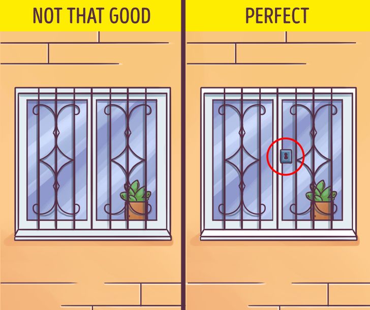 Another popular way to enter your property is your windows. That’s why it’s recommended to install grilles if you live on the first or second floor. Don’t forget that you should have an escape route in case of an emergency: buy grilles that can be unlocked.
