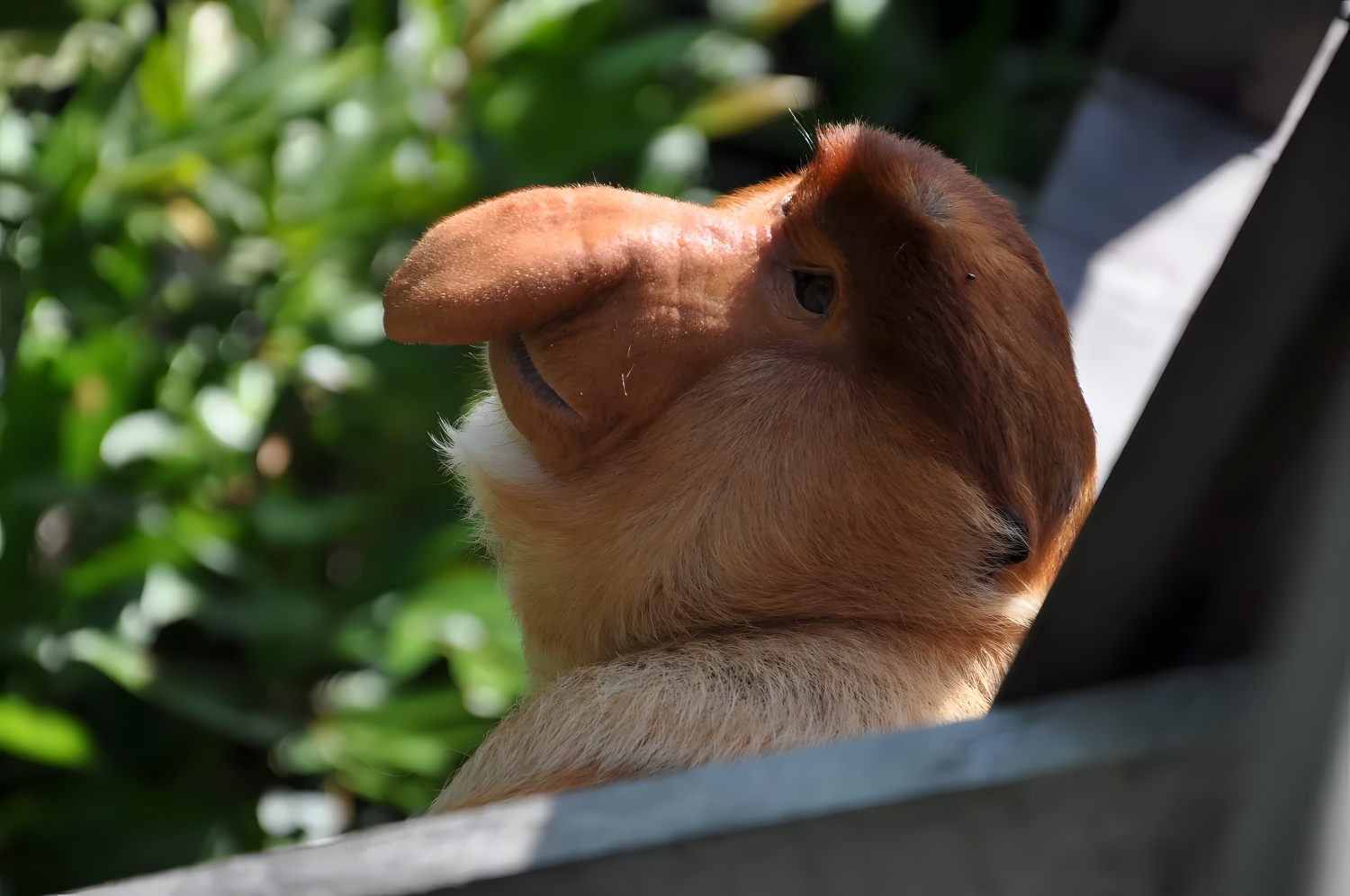 A human might run for cover with this nose, but for the proboscis monkey, the bigger the nose, the better. It turns out that nothing turns on a female proboscis monkey more than a big, bulbous nose. Scientists believe that the large nose has an effect on a male proboscis monkey’s vocalizations that both attracts females and intimidates competitor males.