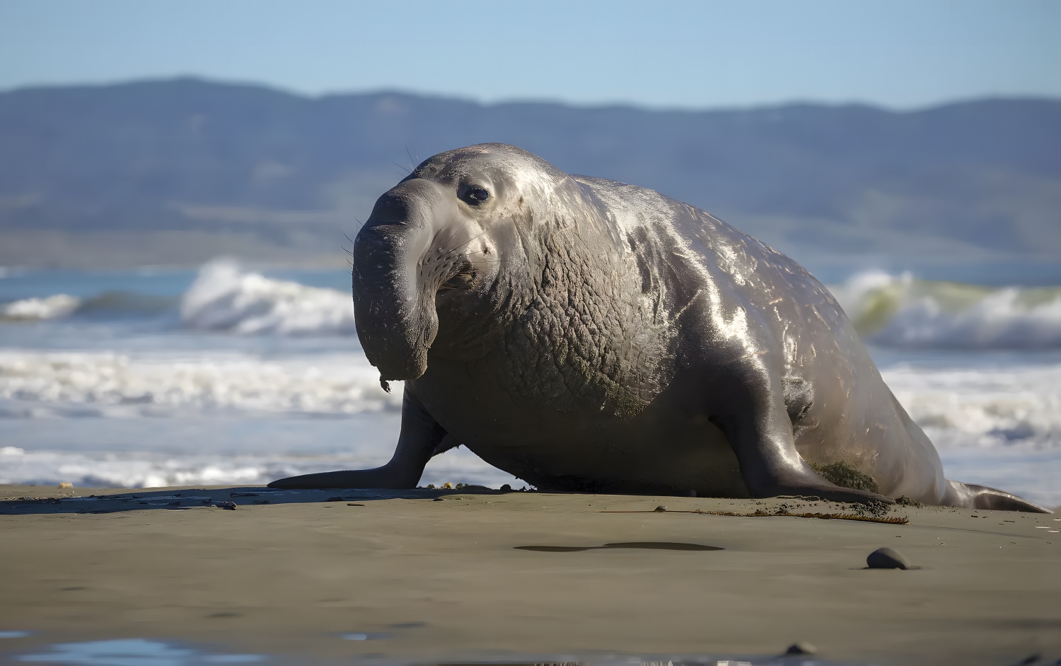 The huge schnoz is fully developed by seven to nine years old, giving the seal the look of its namesake elephant with a massive, floppy trunk.