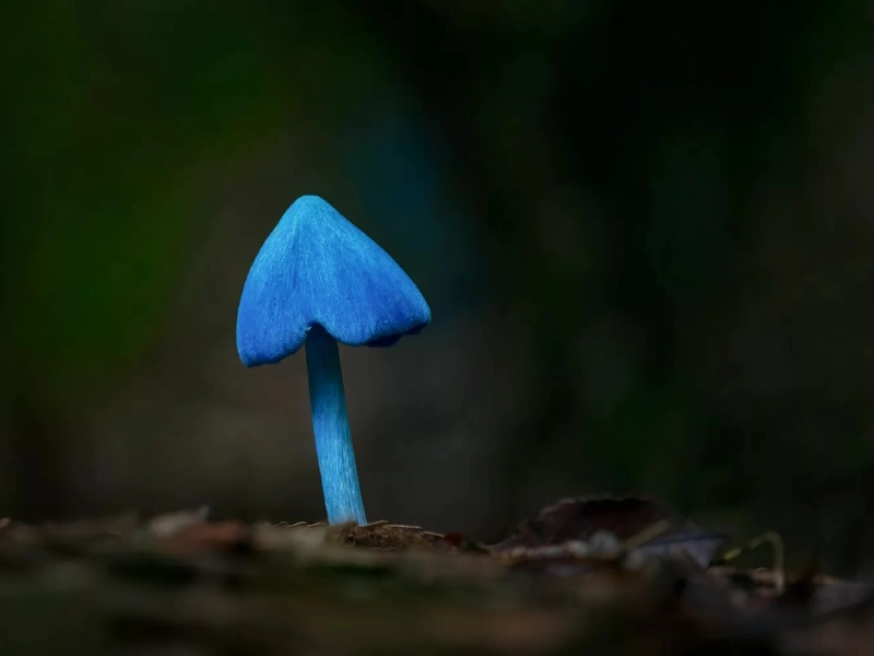 With their vivid royal blue hue, the **blue pinkgill**—scientifically known as **Entoloma hochstetteri**—captures the mind and is quite beautiful. Attributed to a mix of azulene pigments, this vivid colour distinguishes it from other fungus and distinguishes it in its natural surroundings. Often found among leaf litter in areas including New Zealand and India, the blue pinkgill boasts a cone-shaped head. Originally called **werewere-kokako** by the native Māori in New Zealand in respect for the kōkako bird, this highlights even more its cultural value.
