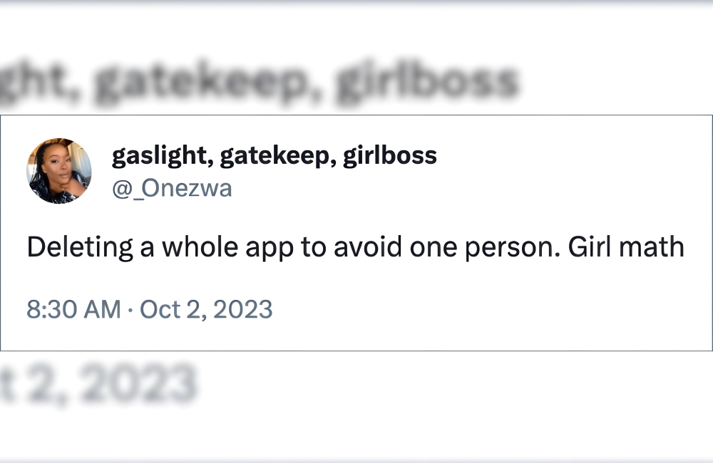 Girl math says that once that app is gone, you have absolutely no way of contacting that person, even when they aren’t blocked. You cannot just text them at an app you never talk on because that would be plain weird. The solution? No contact at all.