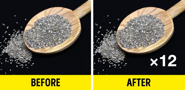 Chia seeds can absorb water 11-12 times exceeding the seed’s mass. It helps fill up the stomach and provides a sense of fullness. It also reduces appetite.