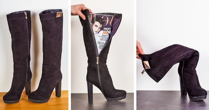 Boot storage can be challenging, but with these easy tips, you can go through it without any trouble. If you have boots with soft legs, stuff them with a thick magazine that has been tube-folded. The magazine will keep your boots upright to prevent creasing at the joint between the foot and leg.