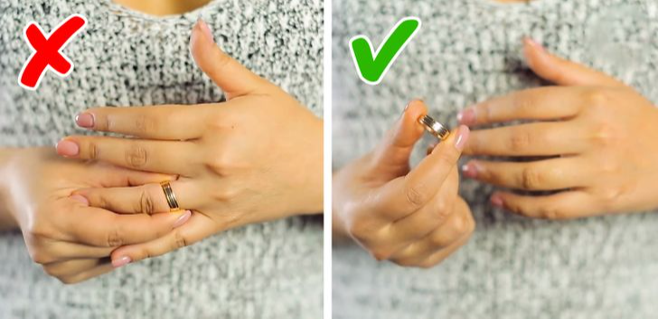 13. A jammed ring Raise your hand if you are unable to take the ring off your finger. Keep it in this position for a few minutes. You can take off the ring after the blood rushes from the hand towards the shoulder. Post navigation 13 Laundry Tips to Make Your Clothes Bright and Fresh Like Spring 10 Things Flight Attendants Rarely Talk About, Plus Tips to Make Your Flights More Comfortable 1 2 3 4 5 6 7 8 9 10 11 12 13