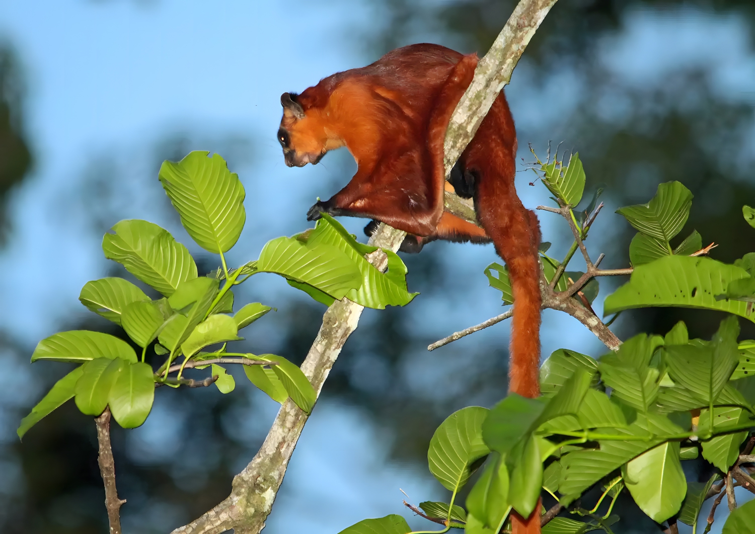 A giant red flying squirrel (Petaurista petaurista) perches on a branch in Sabah, Malaysia. (Photo: vil.sandi/Flickr/CC BY-ND 2.0)