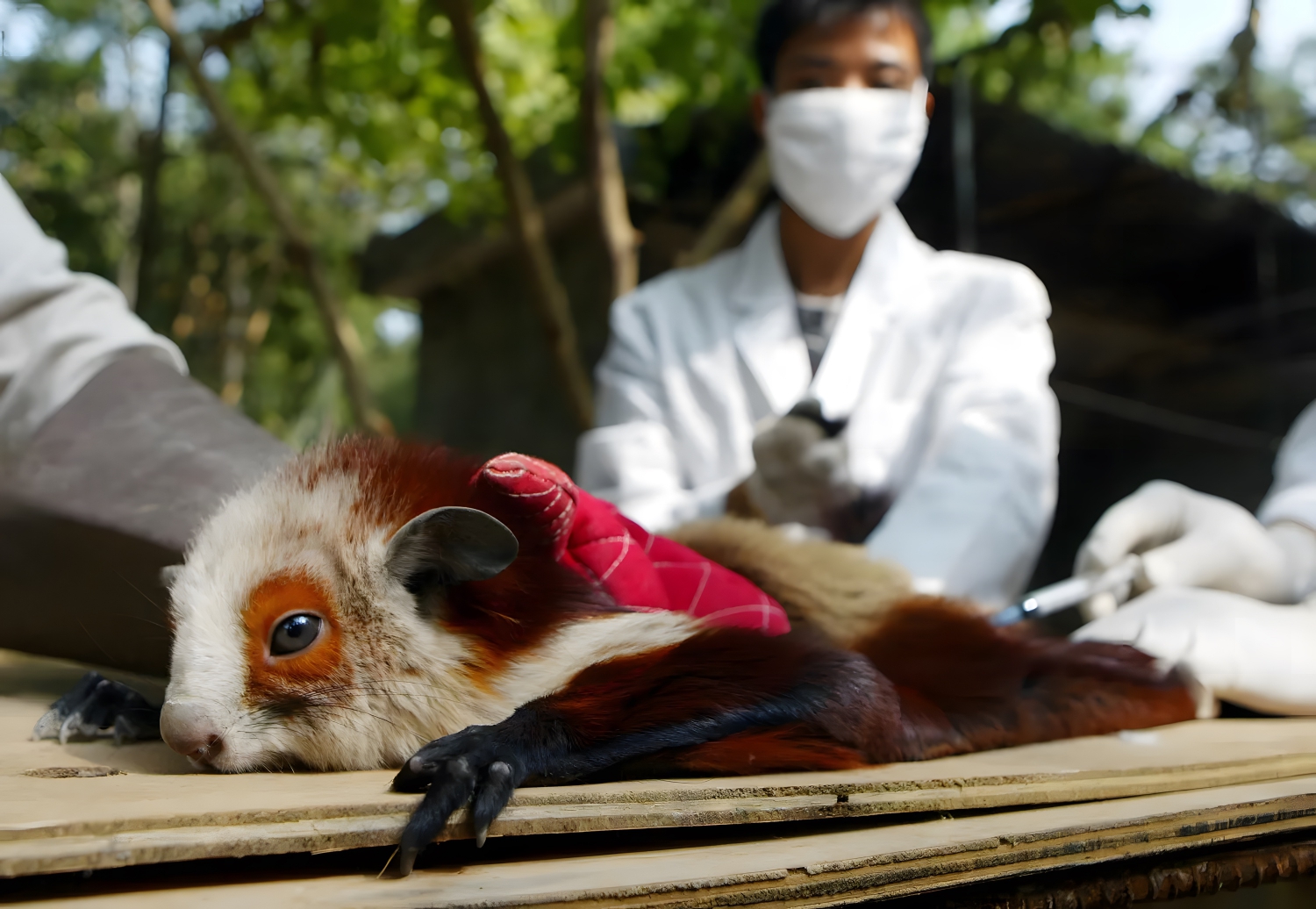 A red-and-white giant flying squirrel is treated at a rescue center in Guangzhou, China. (Photo: China Photos/Getty Images)
