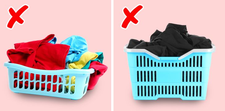 Don’t sort the clothes by their color — sort them by the density of the fabric. Heavy fabrics absorb more water than lighter ones. That’s why the detergent is washed out of different things to a different extent and why mixed washing damages the clothes made of thin fiber. But you should remember 2 exceptions: