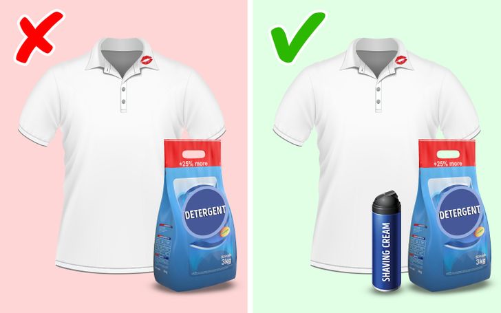 Sometimes it’s impossible to get rid of makeup stains since some foundation, and some types of lipstick can stay on your clothes forever. However, to remove the makeup, you can put some regular shaving cream on the stain and just wash the clothes as you usually would.