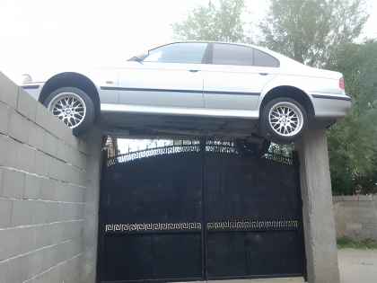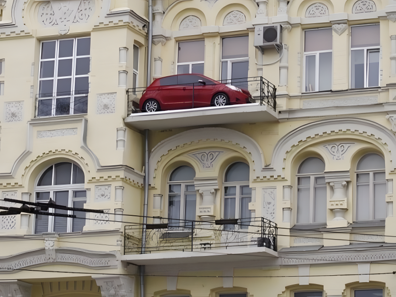 The air on the balcony is inhaled by the car.